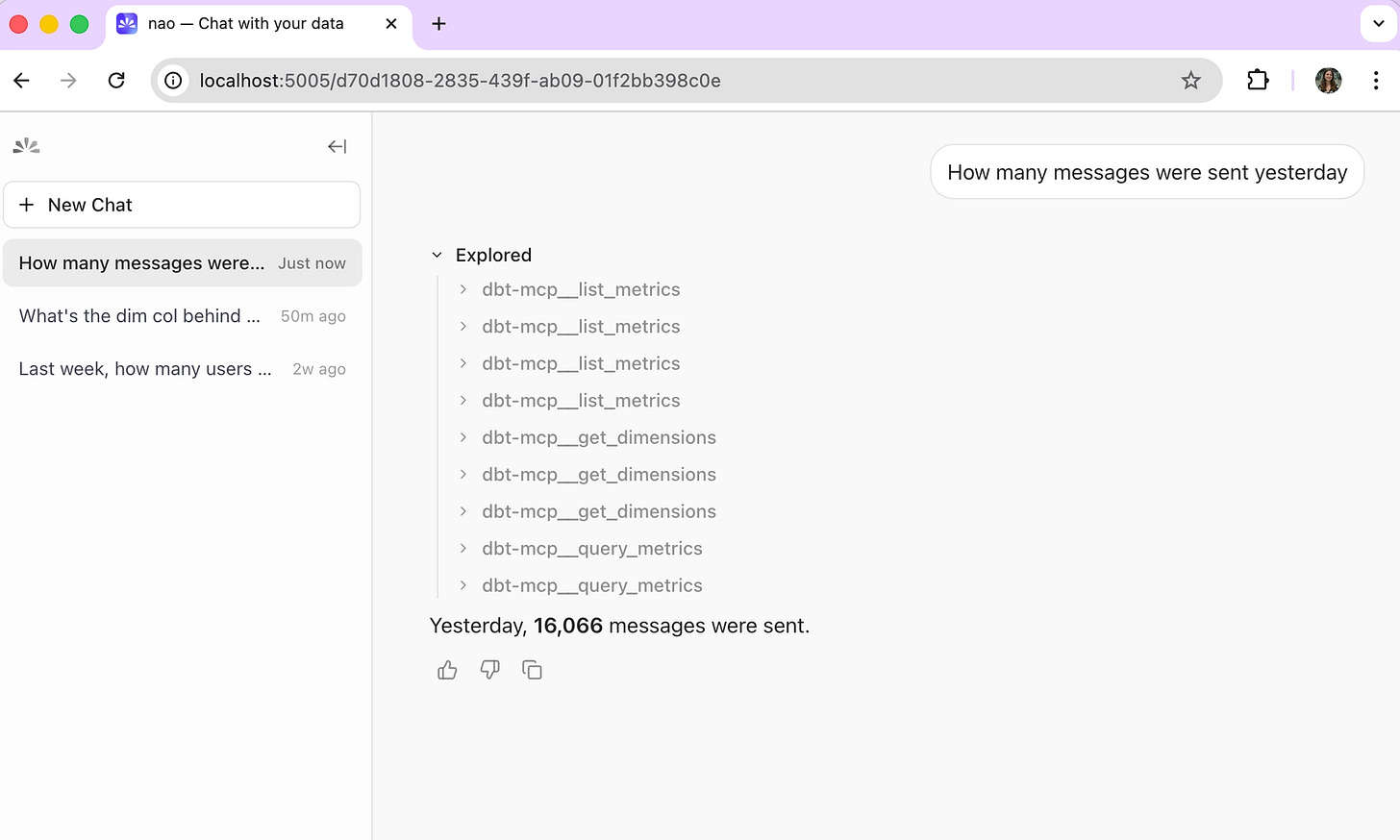 nao is an open-source project for deploying AI agents on file system context plus any MCP. The idea is simple: you commit a config repo with your dbt MCP setup, deploy the nao agent UI, and anyone at the company can interact with their data in the browser.